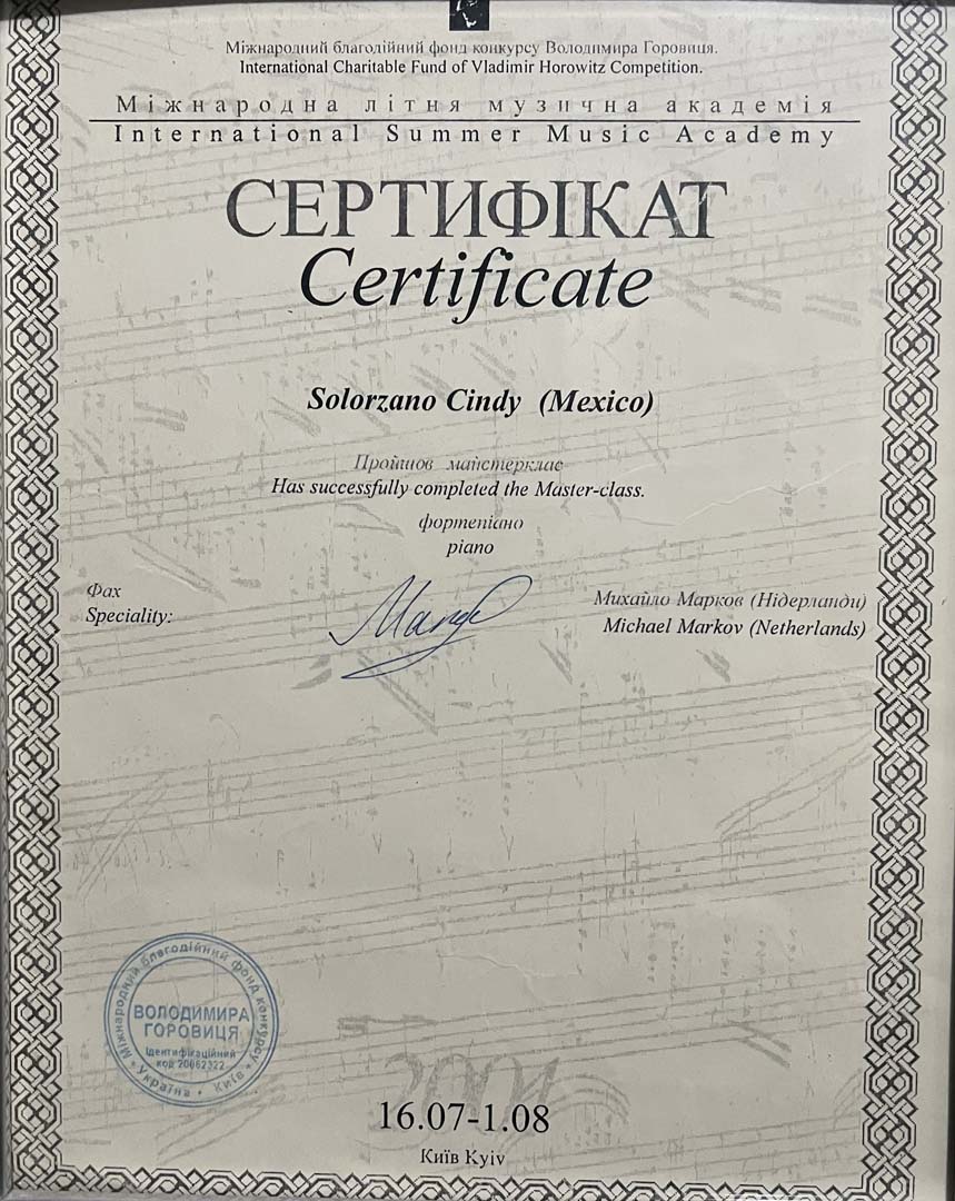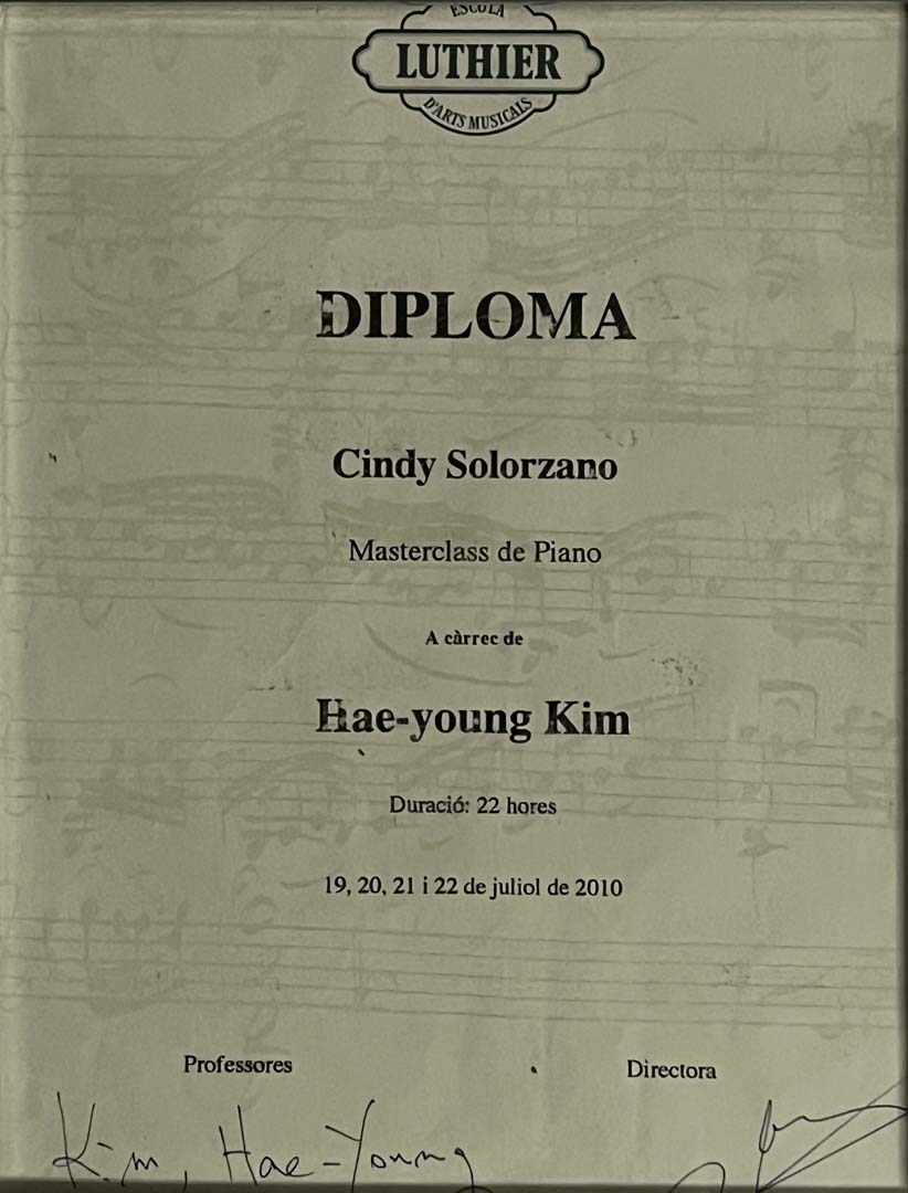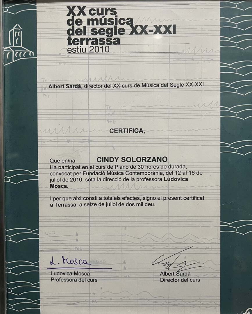 Esta galería reúne los hitos académicos y certificaciones que respaldan una sólida trayectoria internacional, desde los estudios iniciales en el Instituto Universitario de Bellas Artes de la Universidad de Colima hasta el Máster en Interpretación Pianística en la prestigiosa Escuela Luthier de Barcelona.